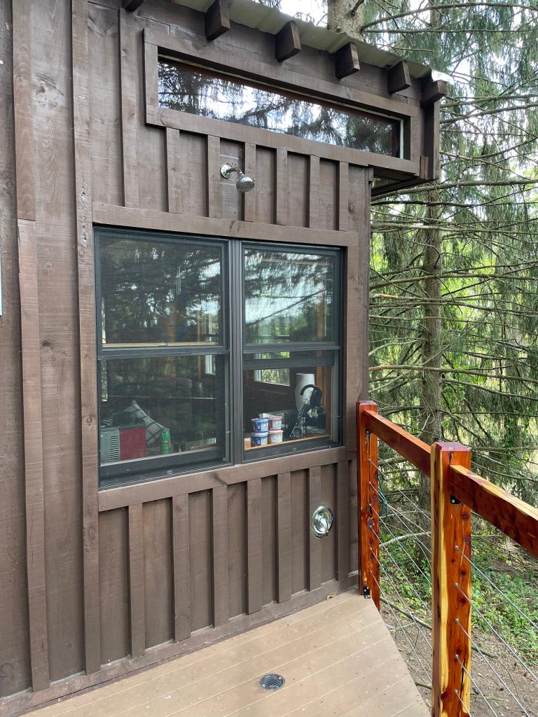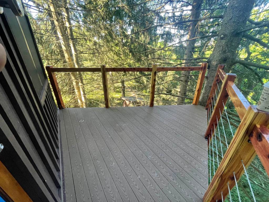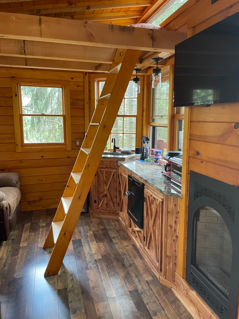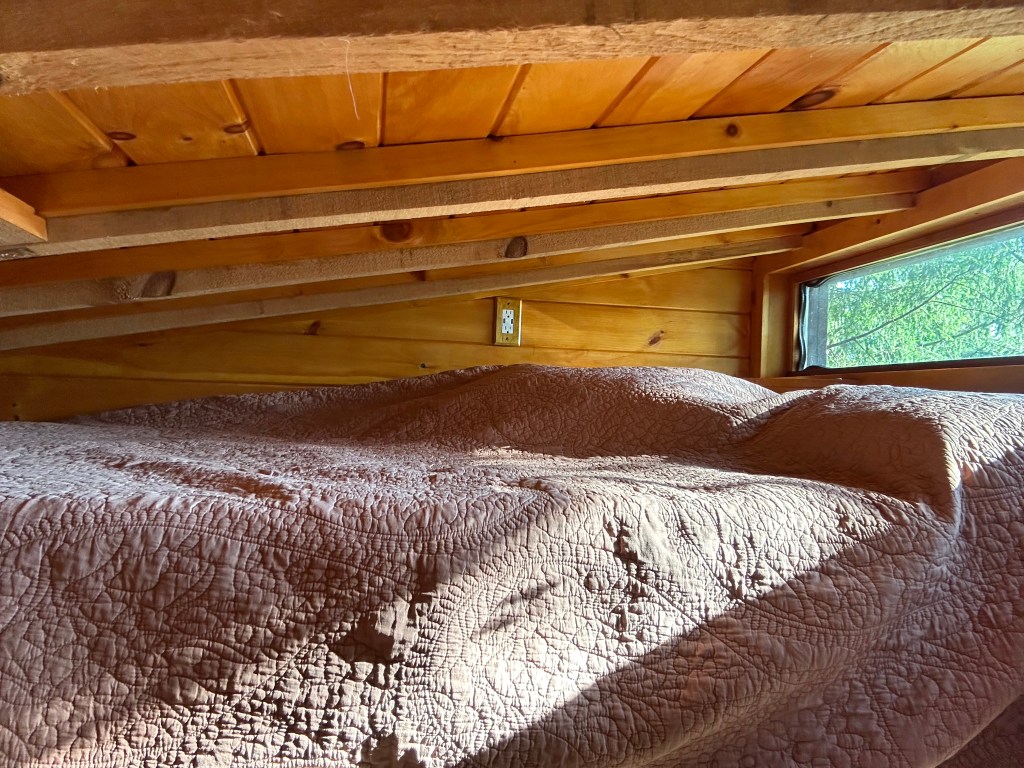 The ladder is easy to lower so you can ascend to the loft. Watch the sunset and let the treehouse sway you to sleep.